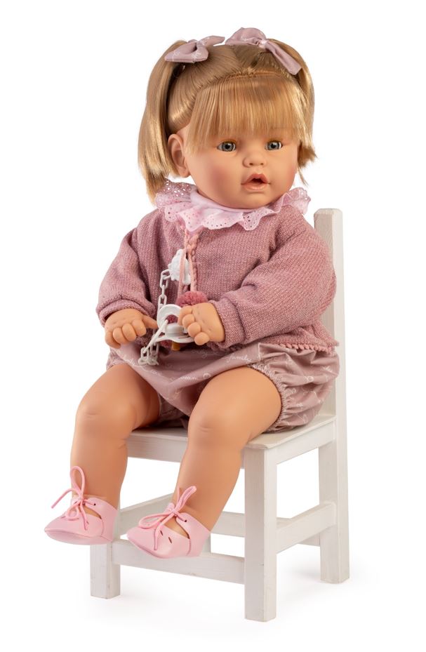 Chora quando se tira a chupeta e diz mamã e papá. É perfumada.